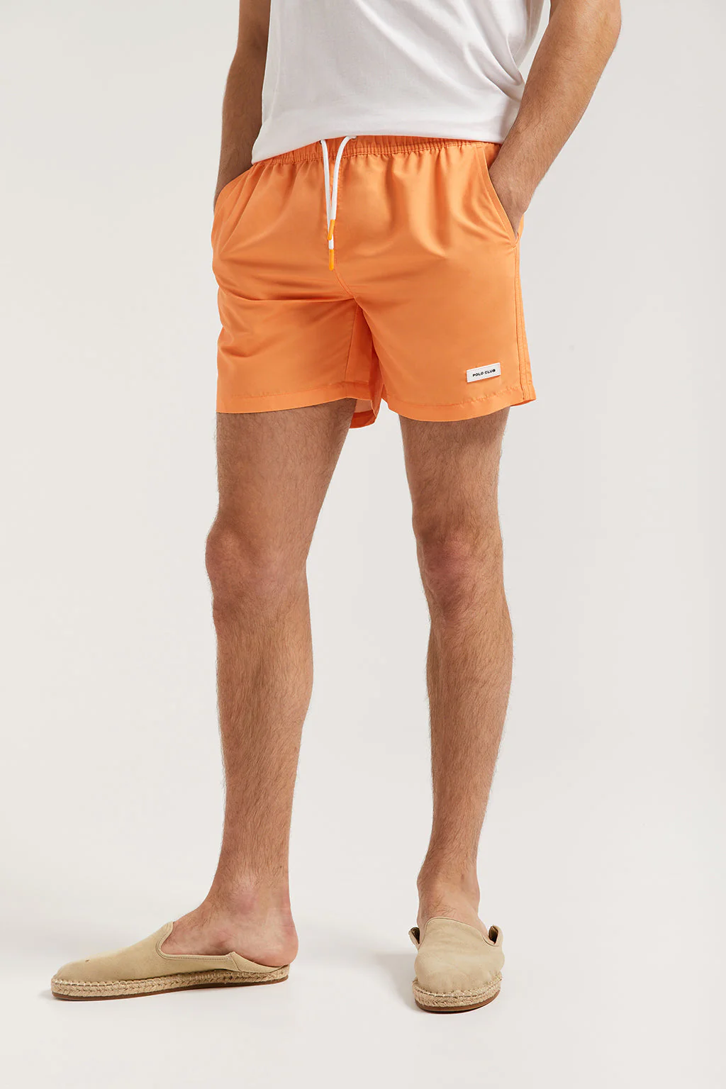 Bañador de largo medio con cintura elástica y cordón ajustable. Confeccionado en poliéster. Este bañador clásico y sofisticado cuenta con una suave malla y un pequeño bolsillo interior. Dos bolsillos laterales y otro trasero con ojal personalizado. Detalle frontal de parche engomado Polo Club.