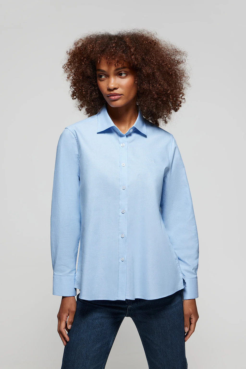 Camisa oxford azul celeste con logo bordado