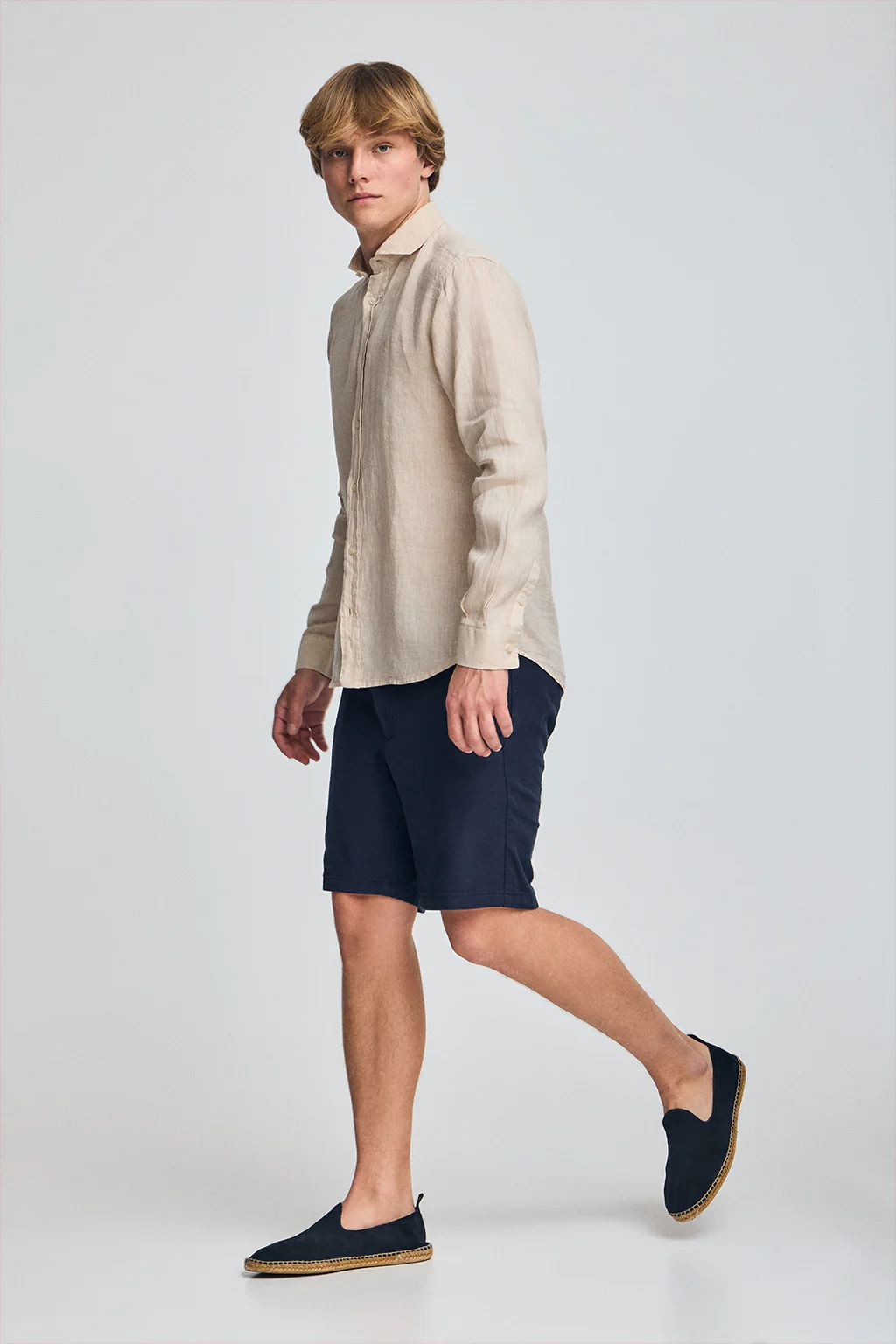 Camisa color arena de lino garment dye con bordado Rigby Best