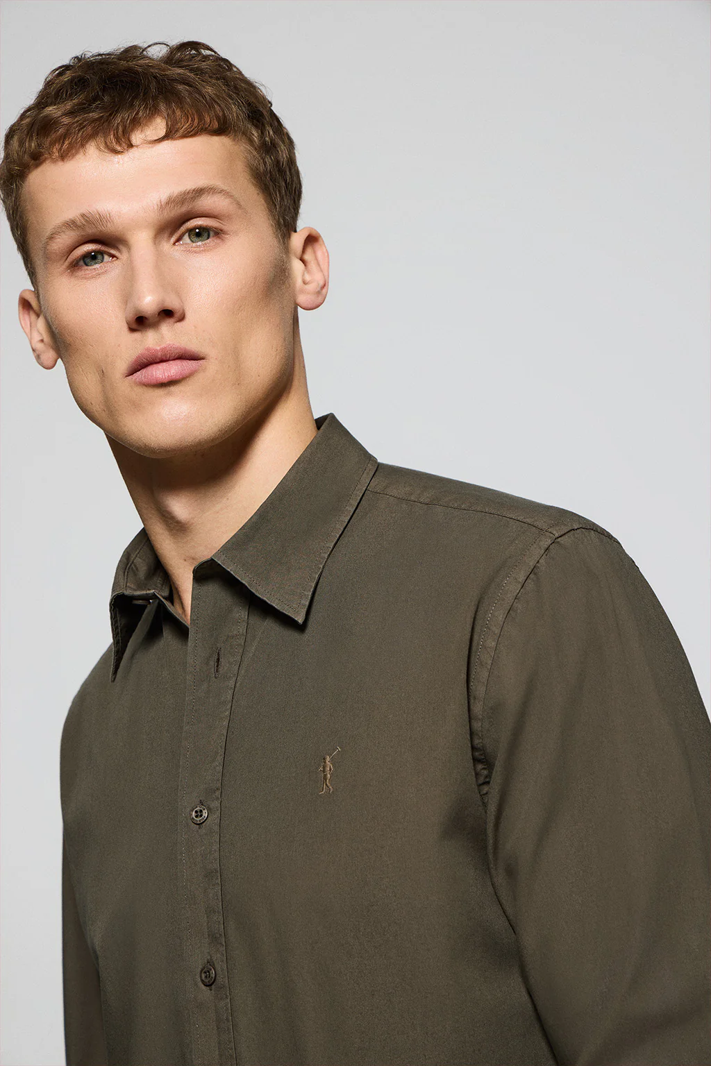 Nuestra camisa regular para hombre combina a la perfección, estilo, sofisticación y funcionalidad. Confeccionada en suave popelín de algodón con tratamiento garment dye es ideal para el día a día o eventos casuales. Su cuello francés añade un aire sofisticado. El piping en el interior del cuello tintado del color de la prenda y los detalles en las costuras laterales añaden un toque sofisticado sin perder el estilo clásico. Los botones logotipados y el último ojal cosido en horizontal son detalles de un diseño refinado y meticuloso. El emblemático logo bordado Rigby Go en el pecho le añade un toque distintivo.