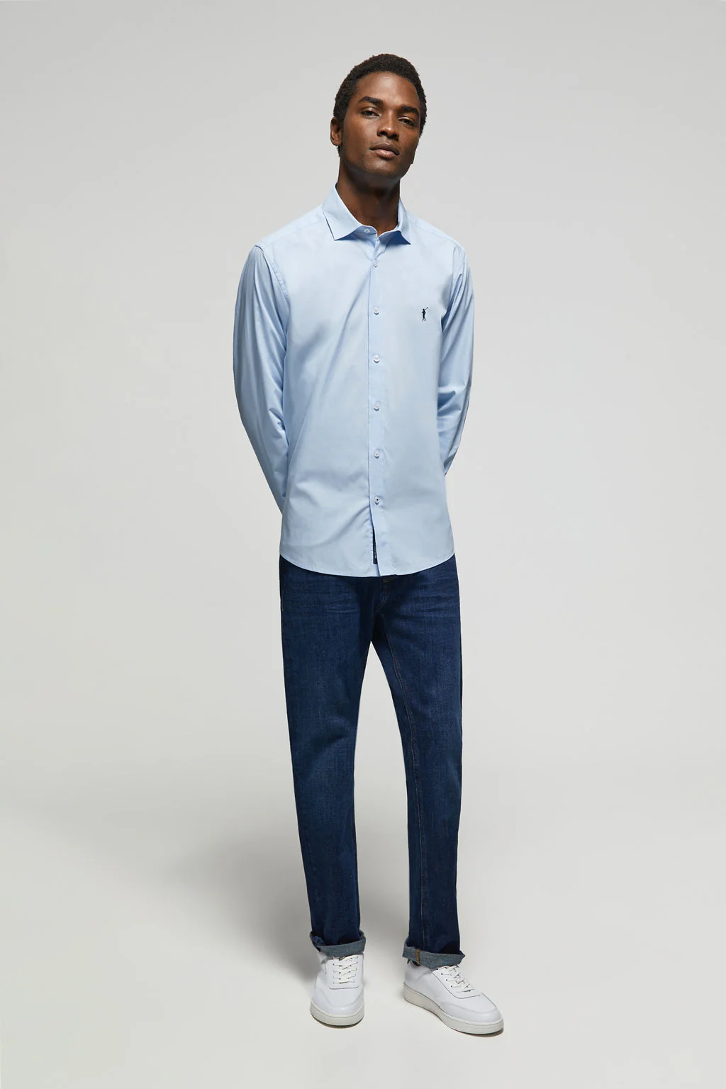 Camisa Slim de popelín azul celeste con logo Rigby Go
