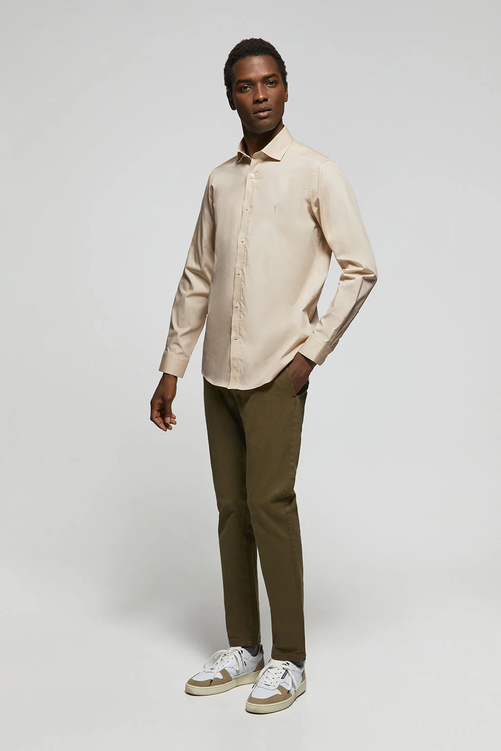 -70%Camisa Slim de popelín beige con logo Rigby Go—
