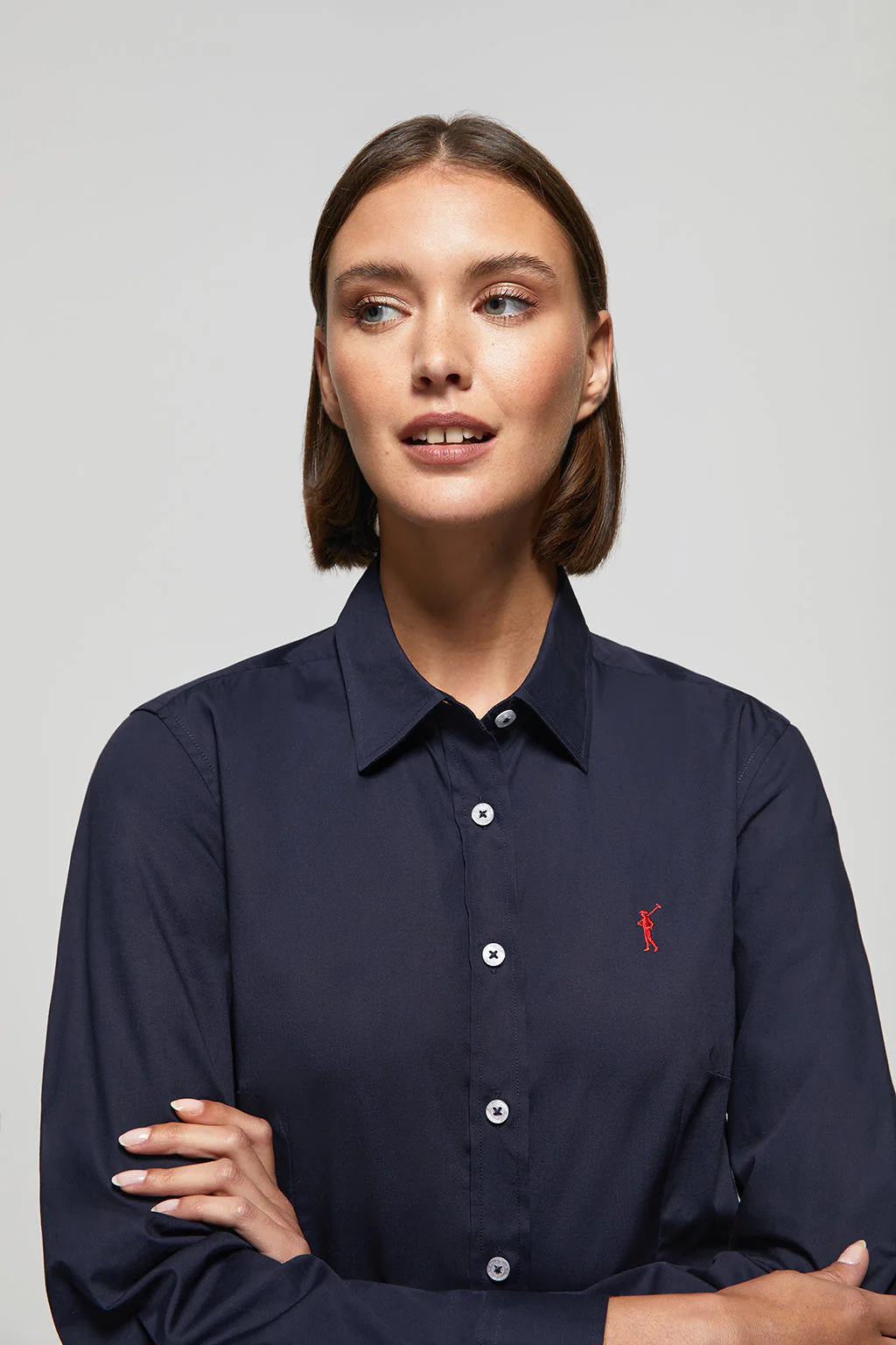 Camisa de popelín Slim Fit azul marino con bordado Rigby Go