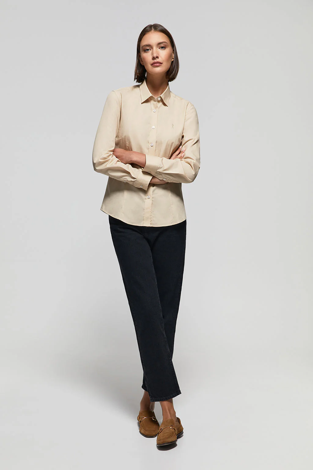 Camisa de popelín Slim Fit beige con bordado Rigby Go