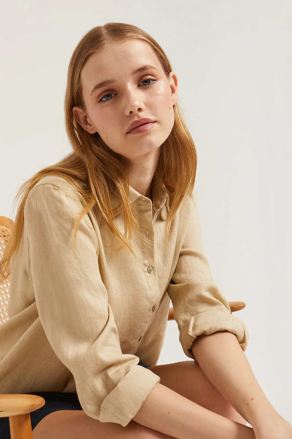 -70%Camisa de lino beige con detalle bordado—