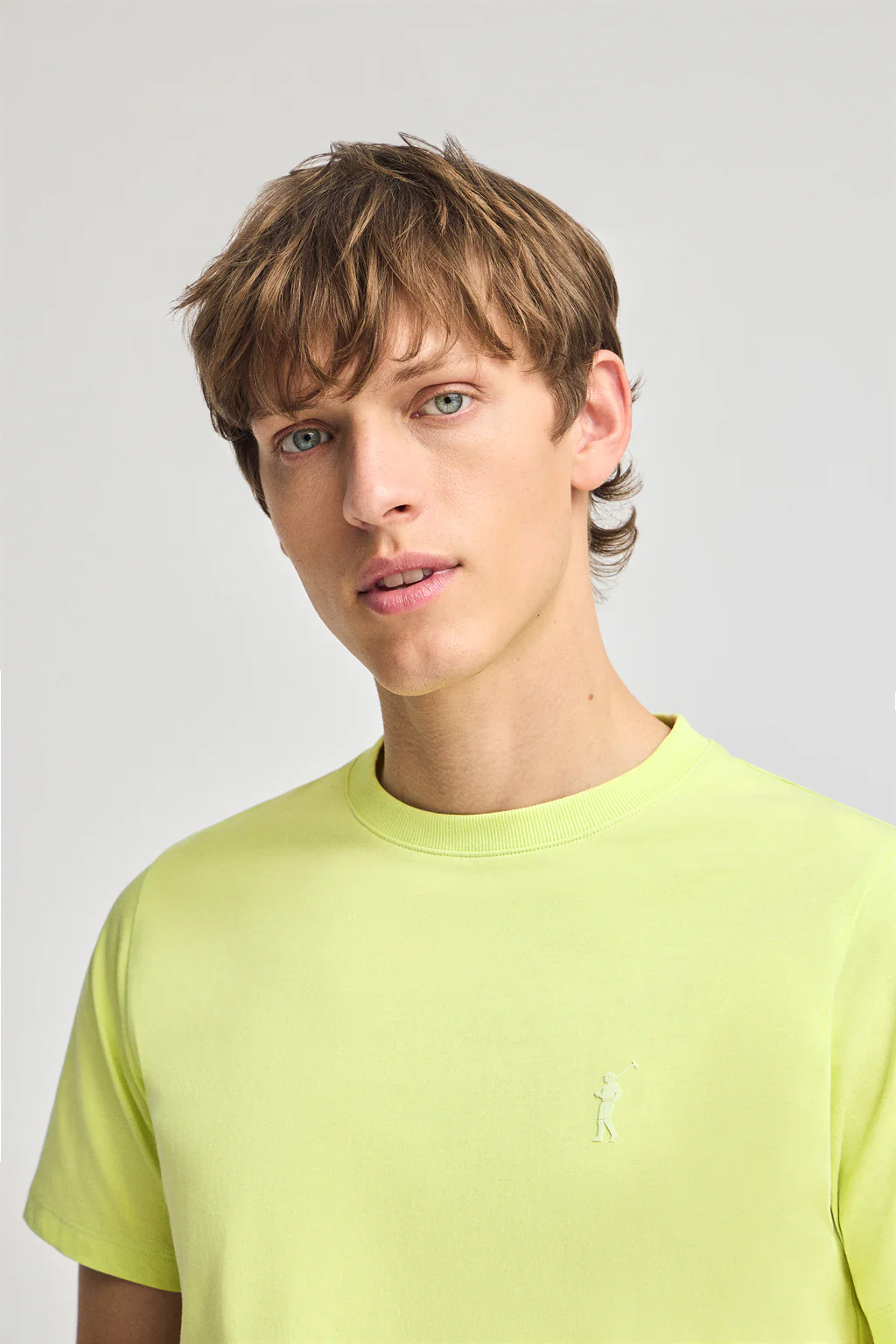 Camiseta verde lima de cuello redondo y Big Rigby Go engomado