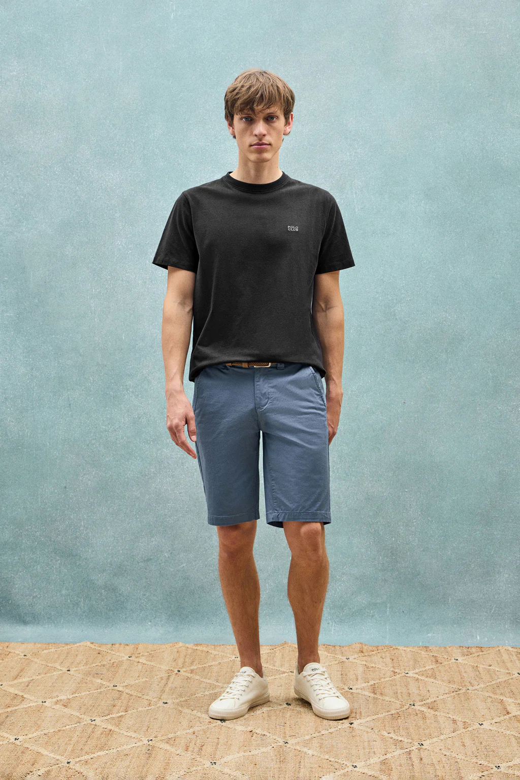 Camiseta negra básica de cuello redondo con detalle bordado