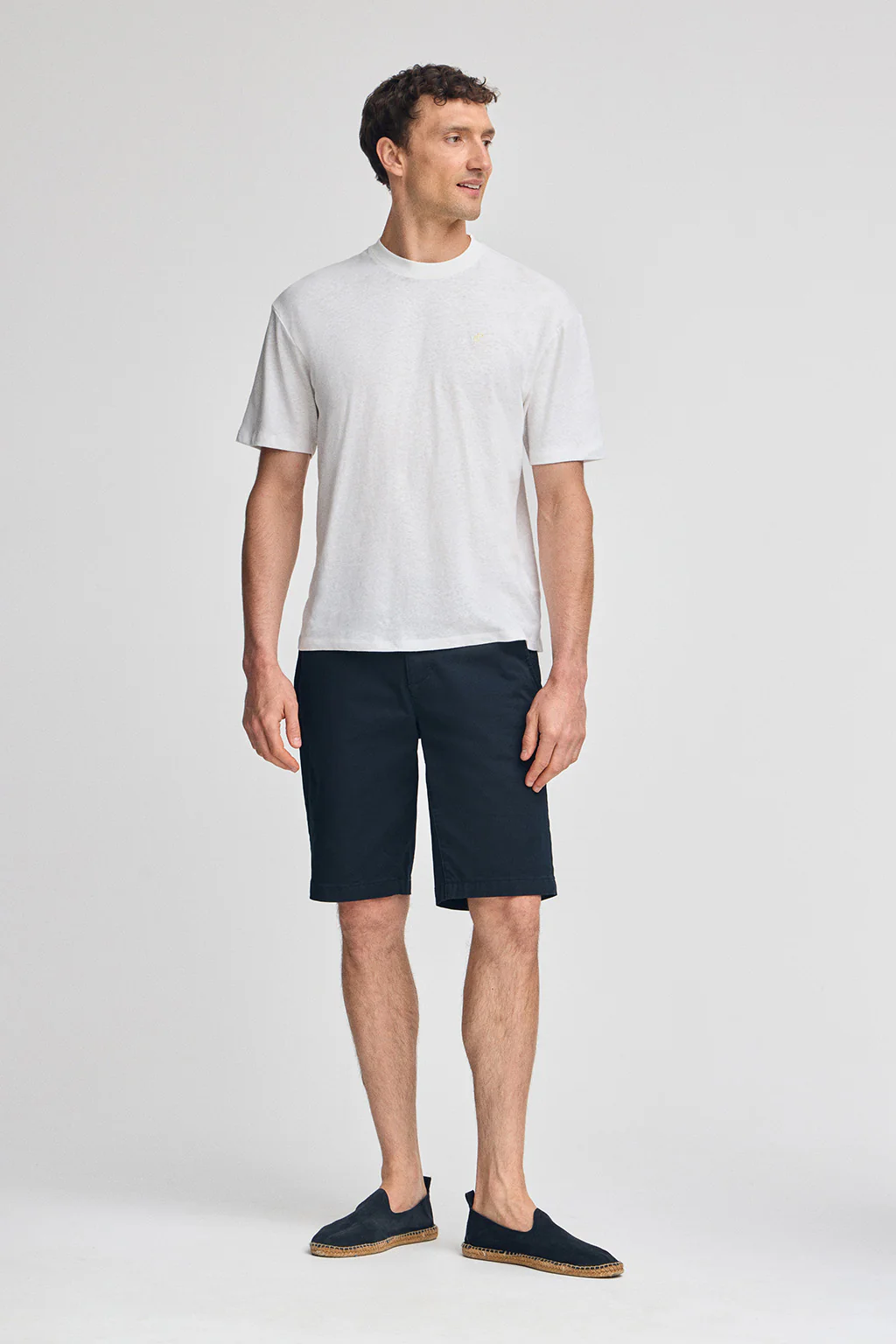 Camiseta blanca en lino y algodón de cuello redondo y monograma bordado