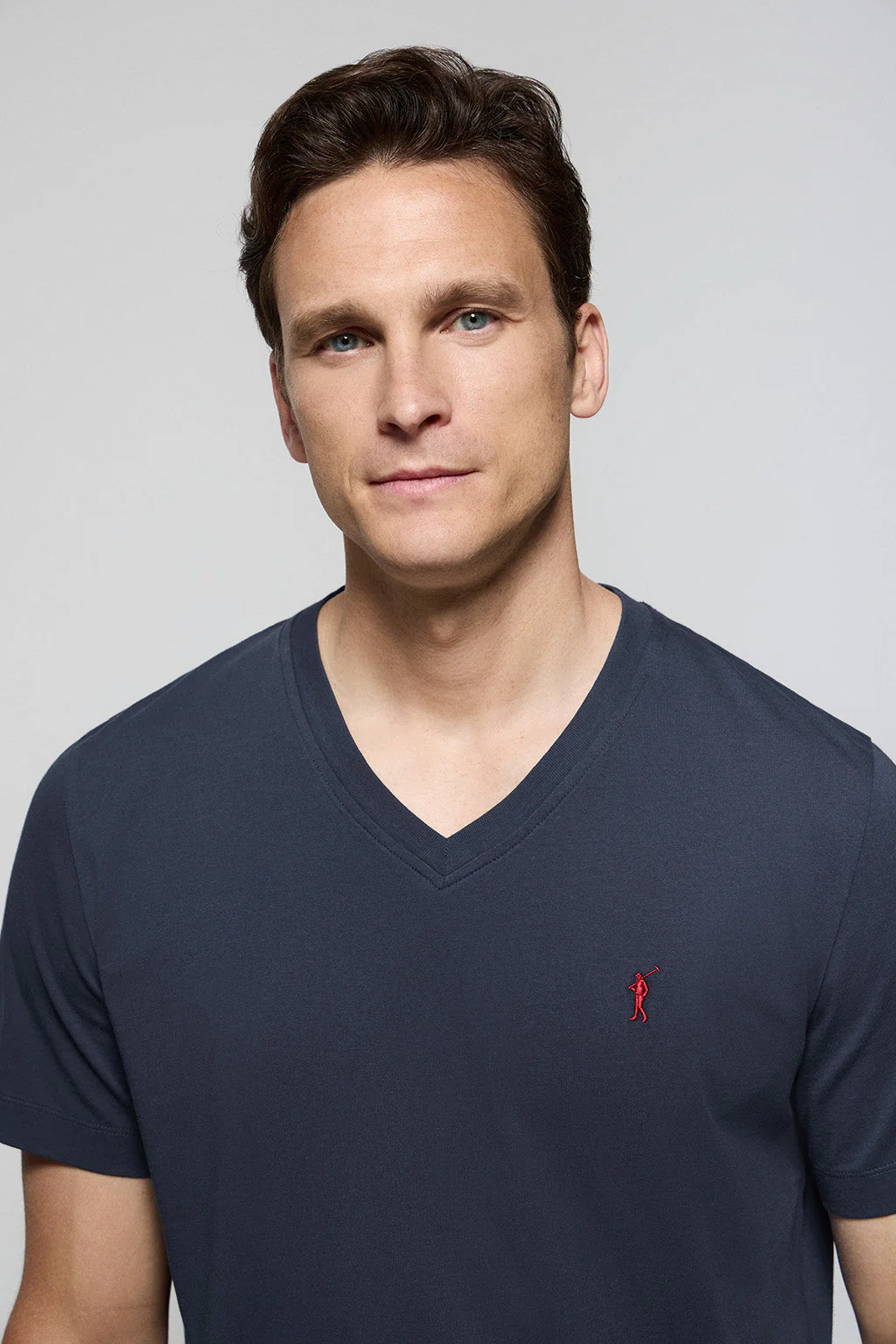 Camiseta azul marino de cuello de pico y manga corta con bordado Rigby Go