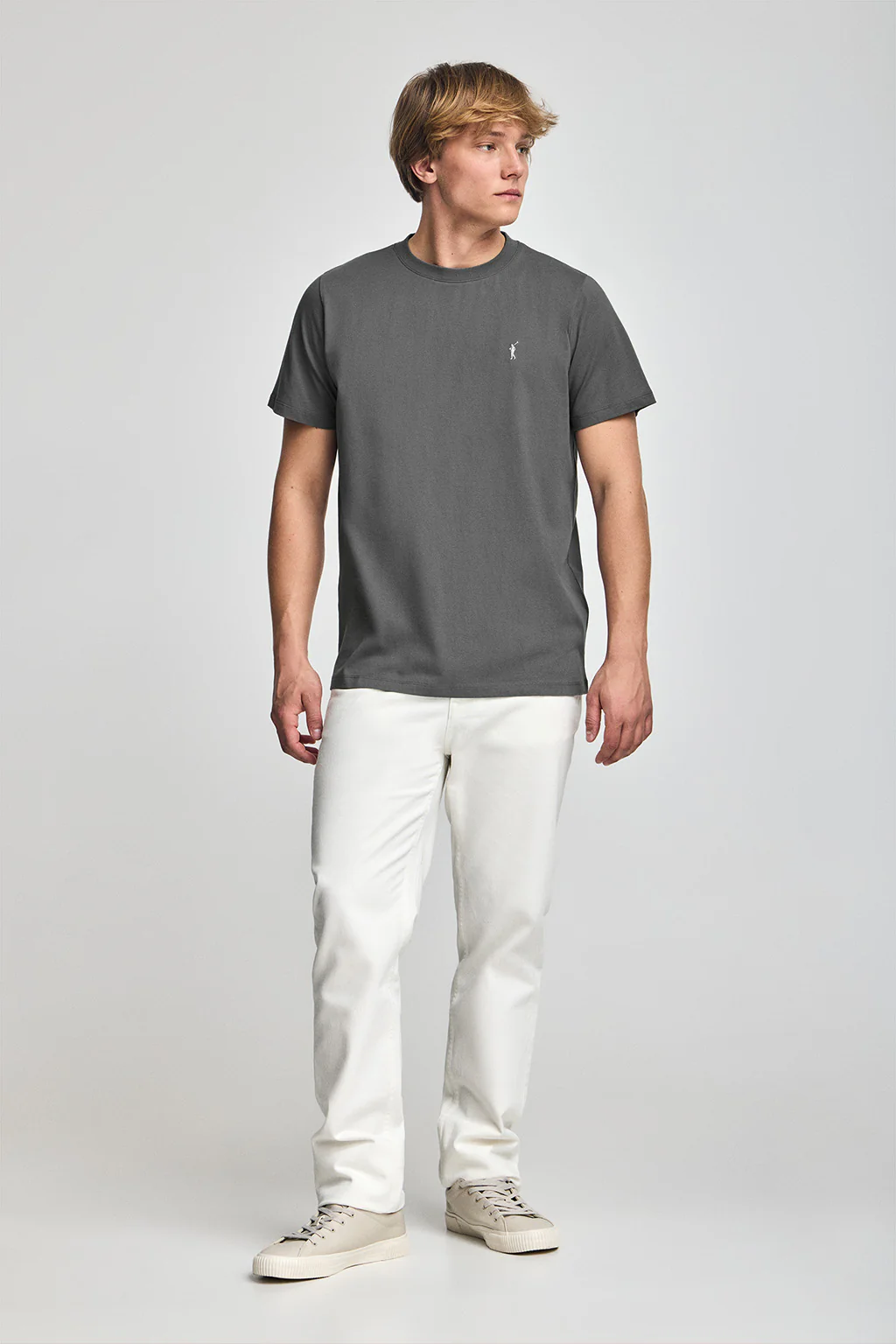 Camiseta gris asfalto con cuello redondo y bordado Rigby Go