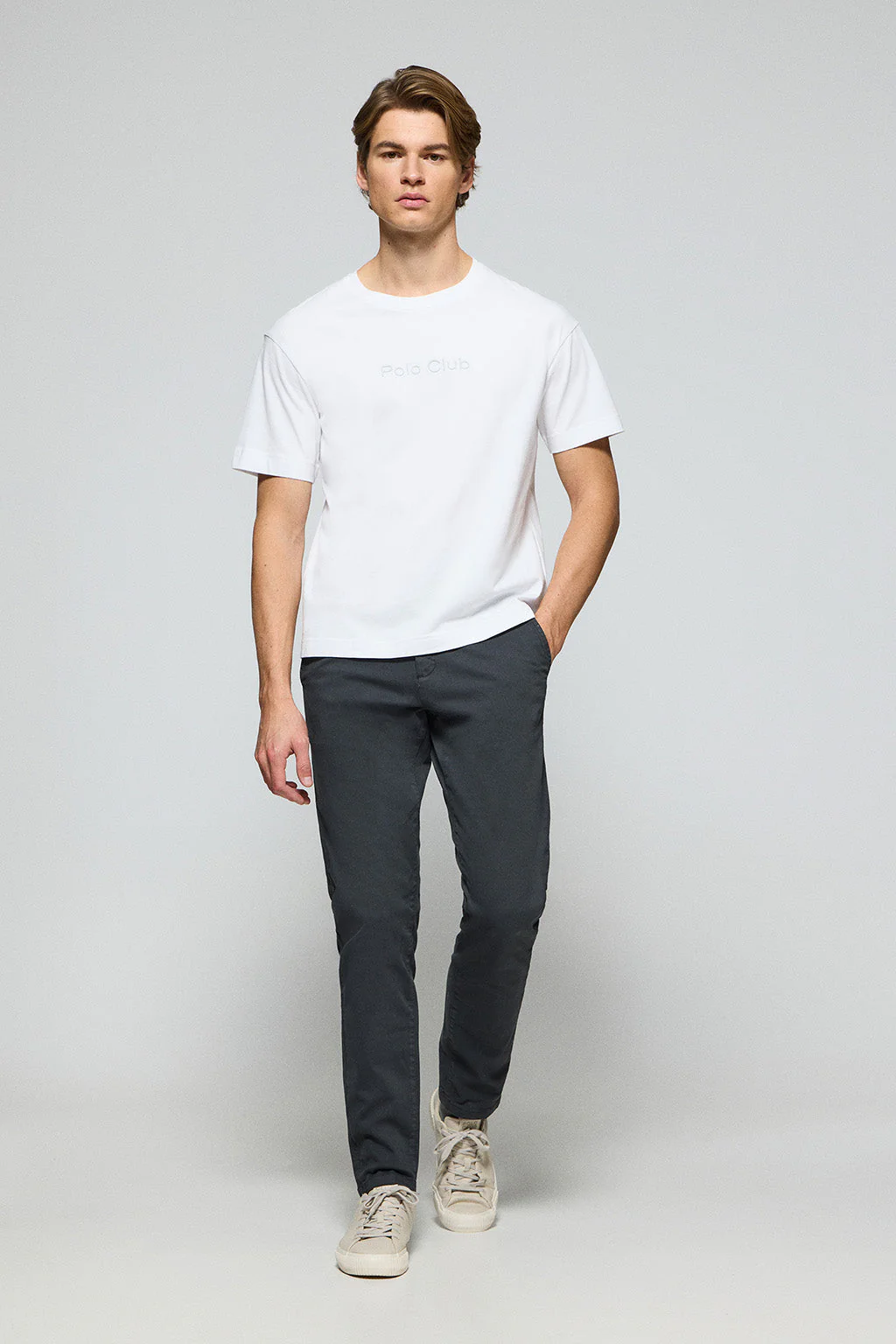 Camiseta blanca de manga corta y cuello redondo con logotipo Polo Club
