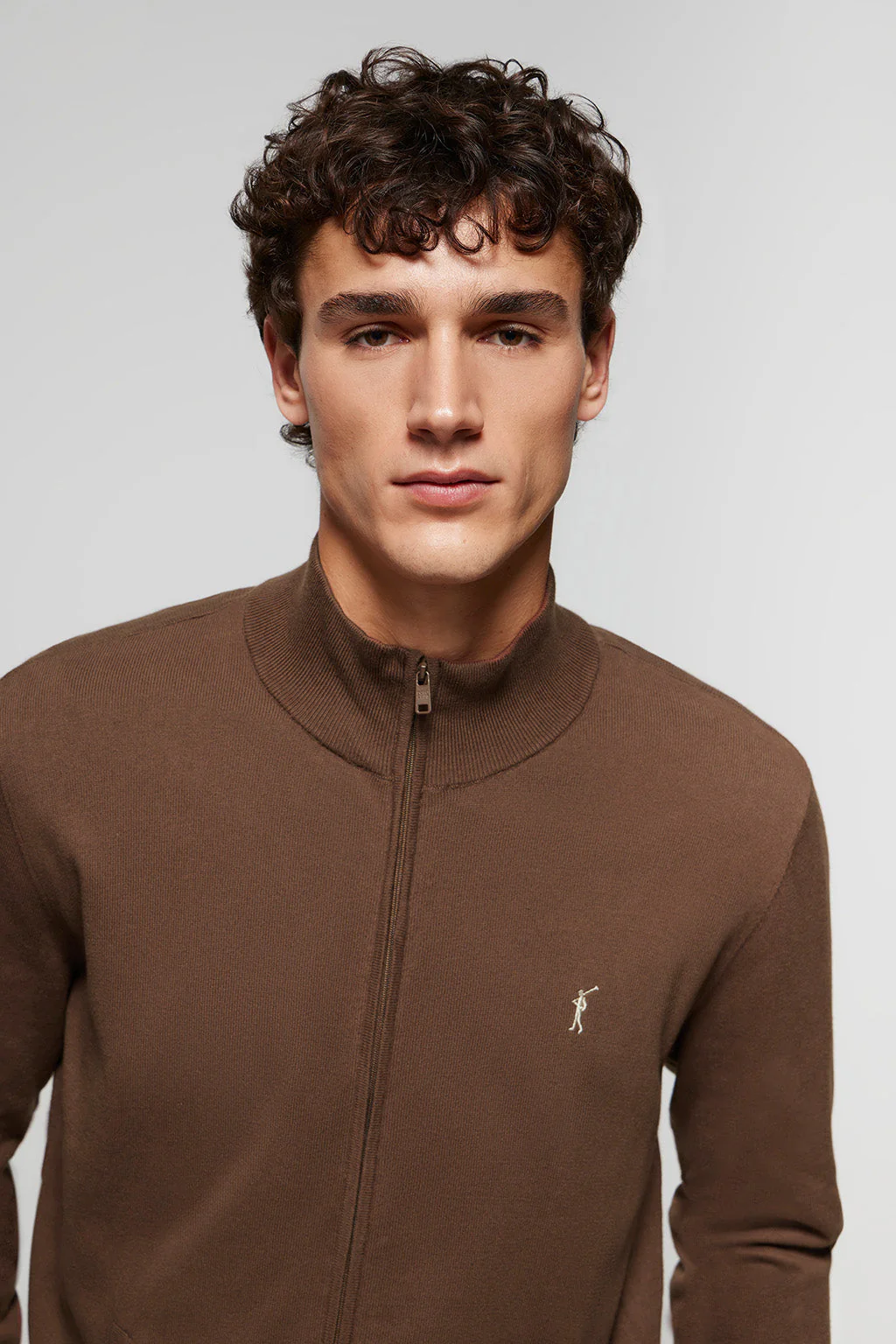 Cárdigan marrón de algodón con cremallera y bordado Rigby Go