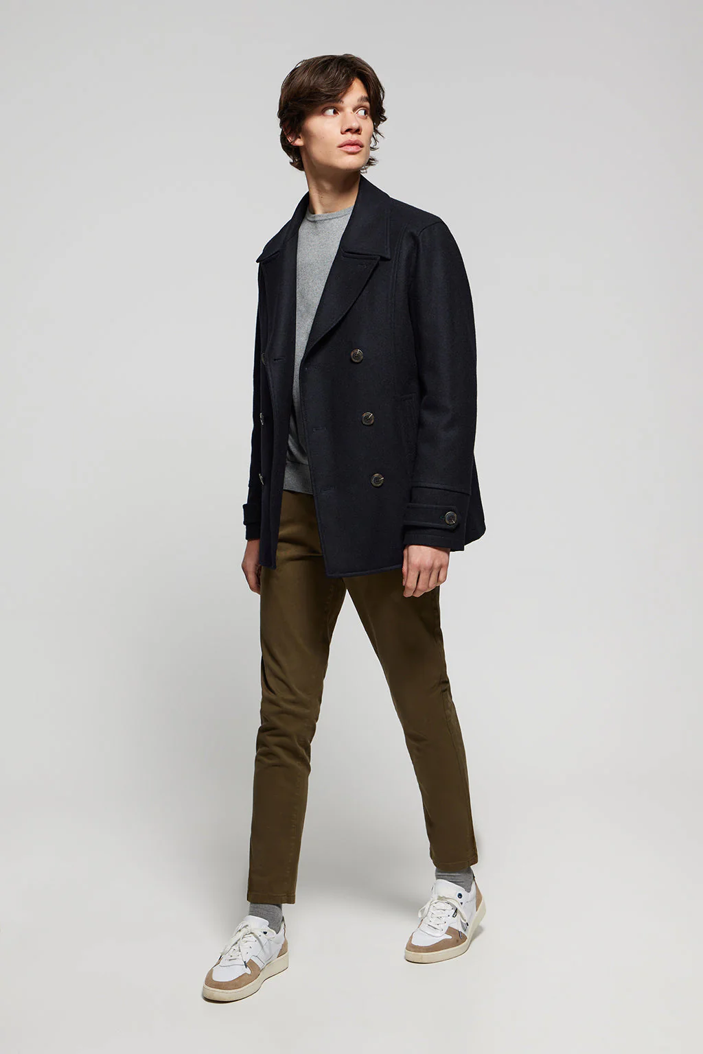 El abrigo de paño lobo de mar Calum, es una prenda versátil que puede acompañar en diversas ocasiones. Sus solapas de muesca y doble botonadura emanan un estilo sofisticado y elegante. Gracias a su tejido exterior confeccionado con un 50% de lana, aporta una calidez excepcional en los días invernales. Cerrado con botón personalizado Polo Club. Trabilla en puños realizada en el tejido principal y con botón personalizado. Forro interior acolchado y detalles verdes en pespuntes y ojales. Dos bolsillos interiores en cada lado uno cerrado con botón. Pequeña abertura en la parte trasera.