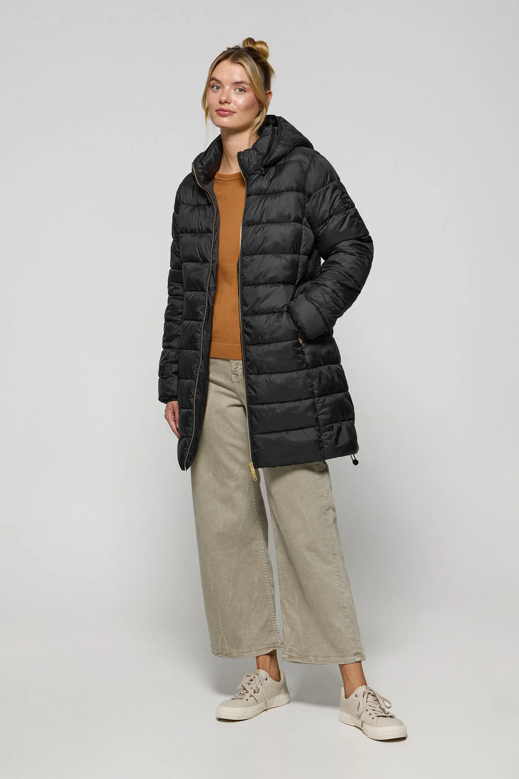 Abrigo ultralight negro Cecilia de capucha extraíble y bordado PC