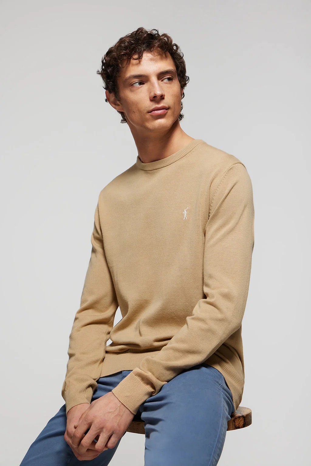 Jersey básico de cuello redondo color camel con logo Rigby Go