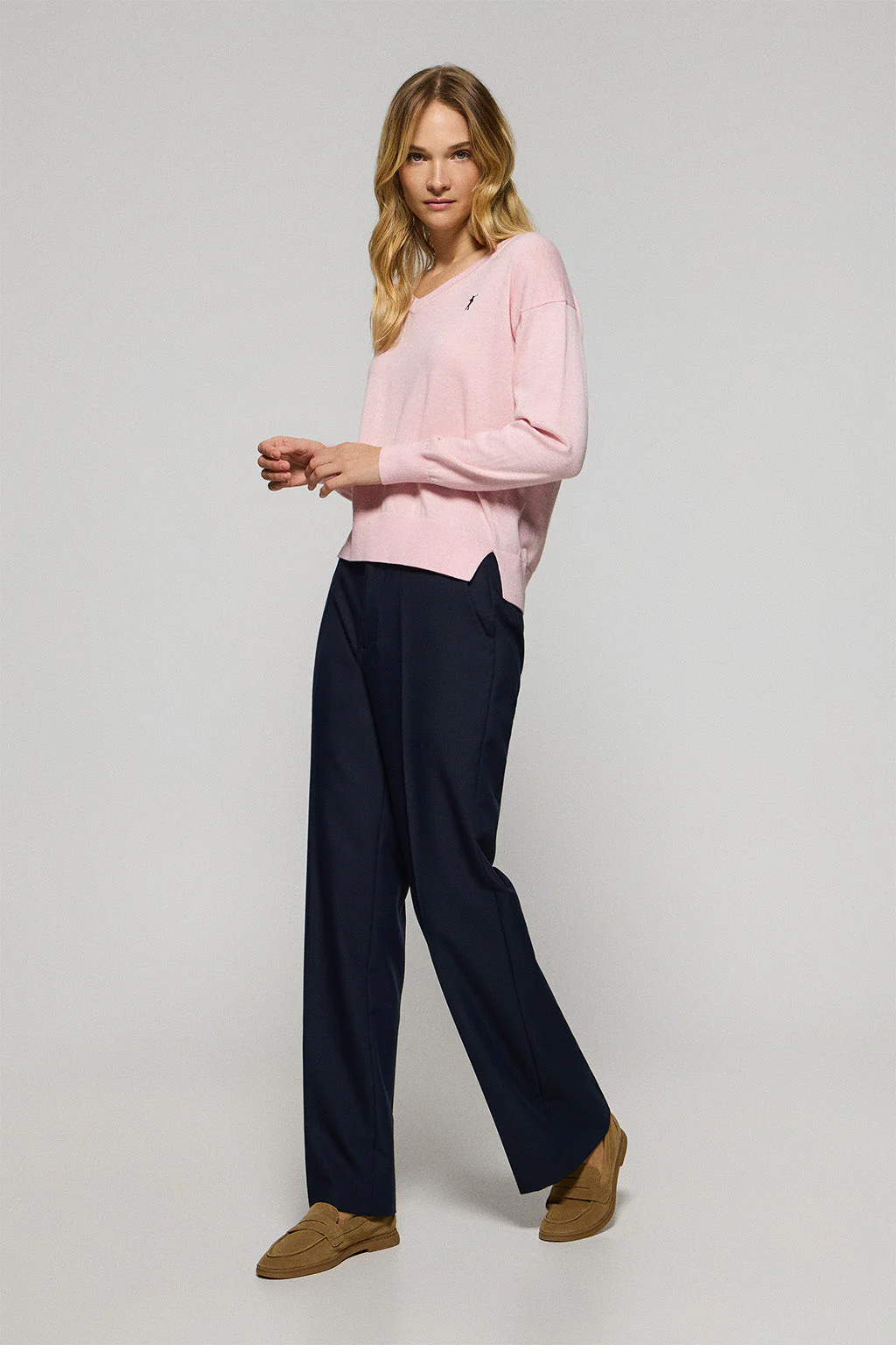 La elegancia está asegurada con nuestro jersey de escote en pico de algodón para mujer de tricot. Su fit regular se adapta a todo tipo de siluetas. Los ribs en cuello, mangas y cintura proporcionan un ajuste perfecto. El sutil detalle de tapacosturas en el cuello azul marino con el logo grabado Polo Club, acompañan la elegancia de este jersey. Bordado icónico de nuestro logo Rigby Go a color contraste en el pecho. Acompáñalo con un vaquero para un look más casual o un pantalón chino para un outfit más elegante.