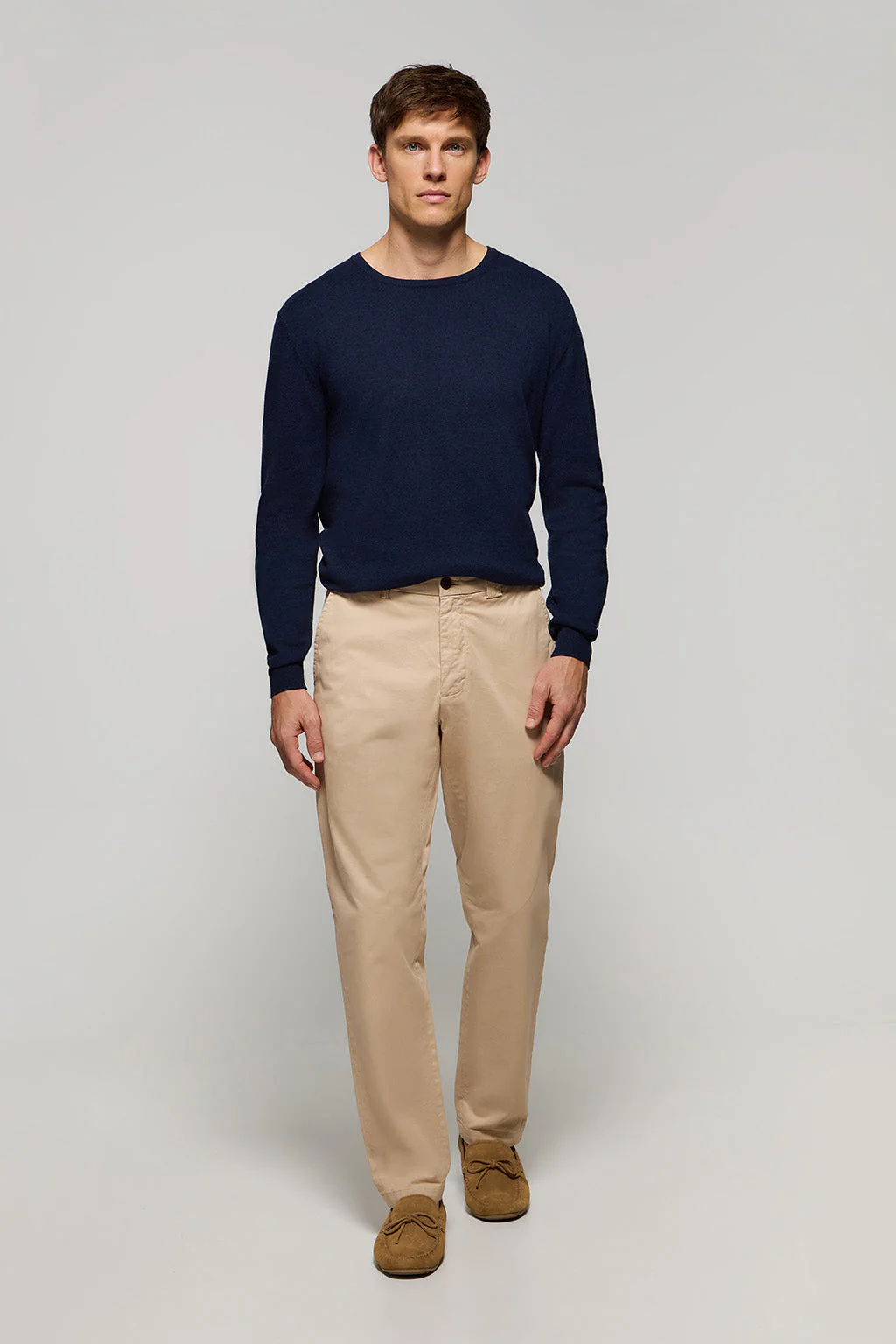 Nuestro pantalón chino Tadeo, de corte regular fusiona la elegancia clásica con la comodidad contemporánea. La mezcla de su confección de algodón y elastán ofrece un ajuste cómodo y flexible. Sus cuatro bolsillos, dos delanteros y dos traseros, aportan funcionalidad sin perder estilo. El cierre con cremallera y botón personalizado agrega un elemento distintivo. Destaca por sus detalles sutiles, como sus bordados Polo Club en la trabilla delantera y el bolsillo trasero, o su interior con cinturilla personalizada. Combínalo con todo tipo de prendas, desde nuestras sudaderas, hasta nuestra blazer para un look más formal.