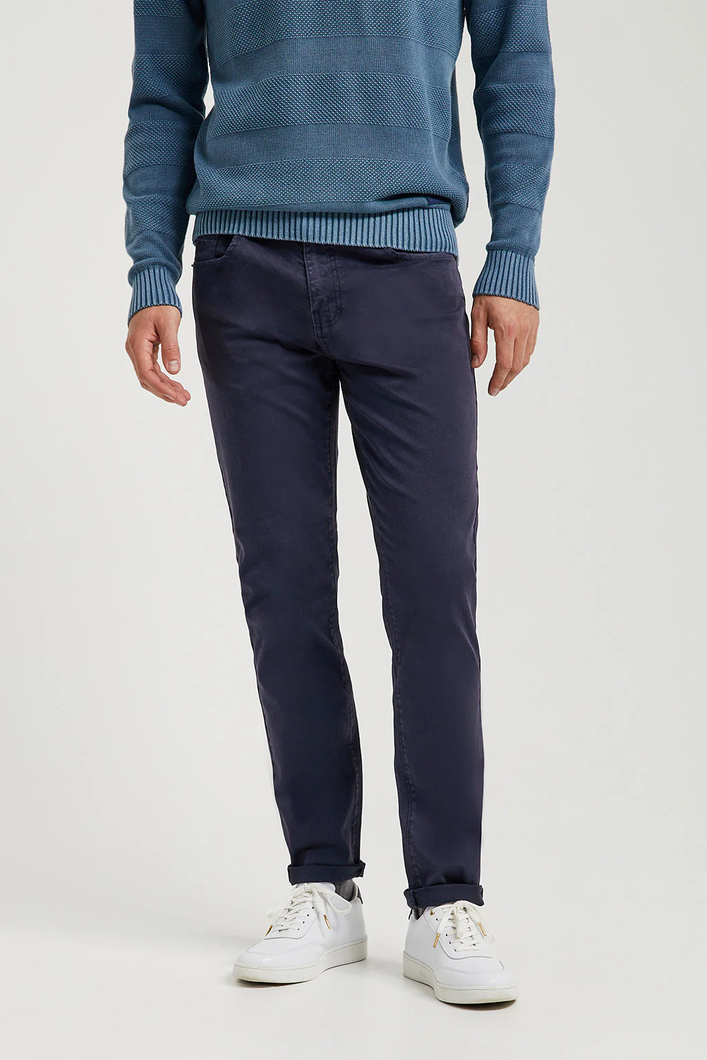 Pantalón azul marino de cinco bolsillos con logo bordado