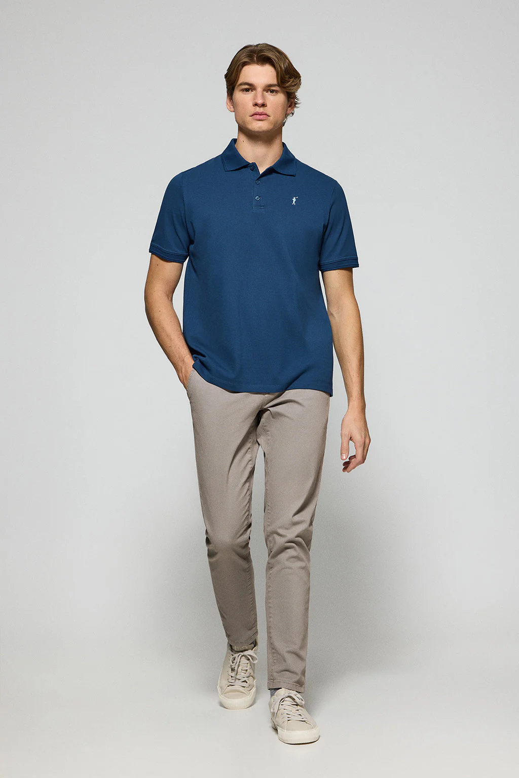 Polo de tres botones azul índigo con logo bordado Rigby Go