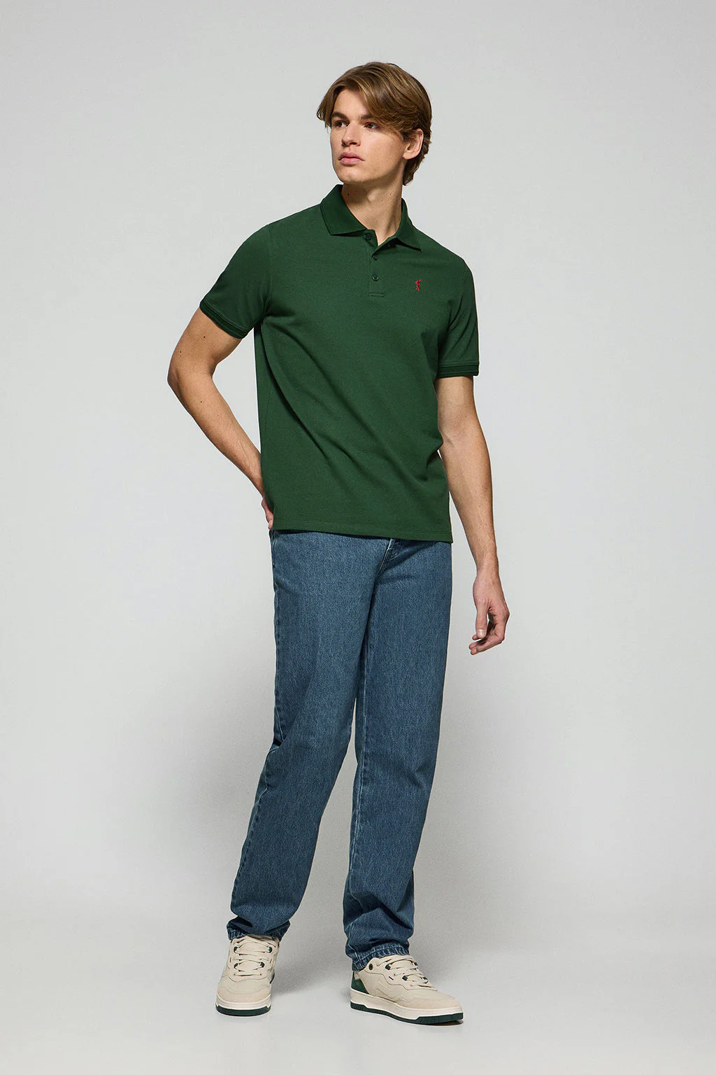 Polo de tres botones verde botella con logo bordado Rigby Go