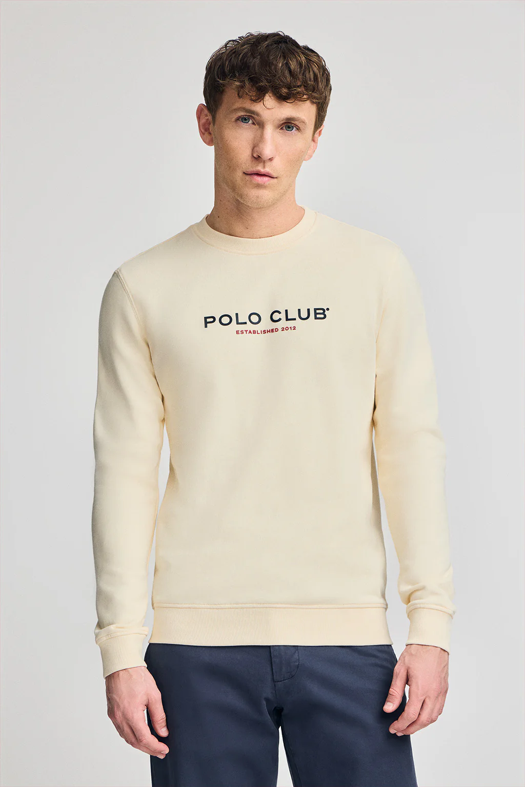Sudadera color crudo regular de cuello redondo y print engomado