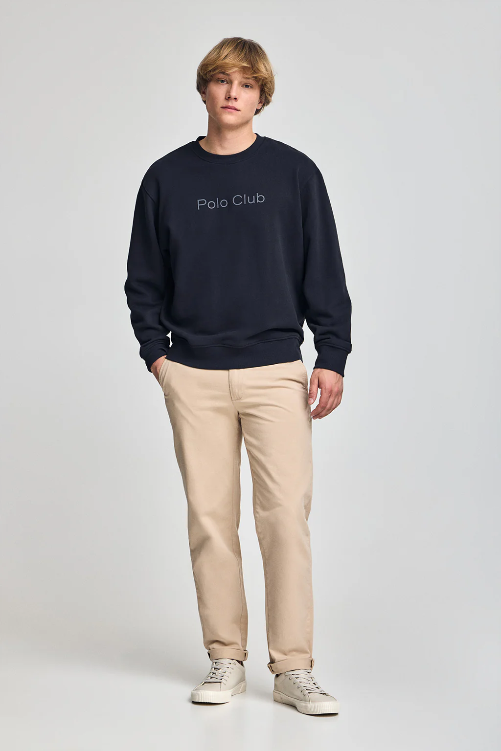 Esta sudadera de cuello redondo para hombre, confeccionada en algodón de suave acabado y un fit más relajado brinda comodidad y estilo, ideal para quienes buscan un look casual y urbano. El cuello redondo, puños y cintura presentan una terminación acanalada para un ajuste óptimo. Tapacosturas en el interior del cuello logotipado. El interior no afelpado añade un toque fresco, perfecta para los días más cálidos. En el pecho presenta el logo de Polo Club engomado haciendo matching con el color de la prenda, logrando un diseño minimalista. Esta prenda es ideal para combinar con unos jeans o pantalones chinos para un estilo casual con un toque sofisticado.