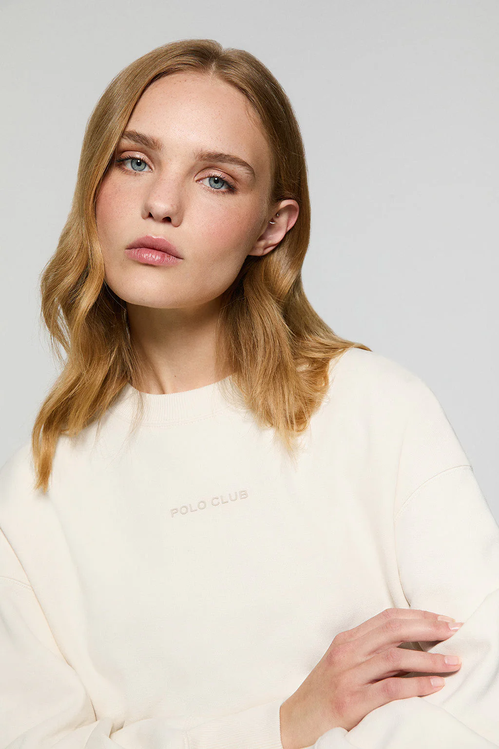 Sudadera básica beige de cuello redondo Minimal Polo Club